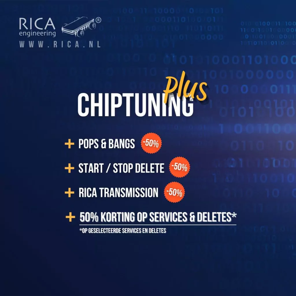 Bestel een Rica Tuning en ontvang 50% korting op geselecteerde aanvullende diensten. Je krijgt korting op de volgende software aanpassingen: